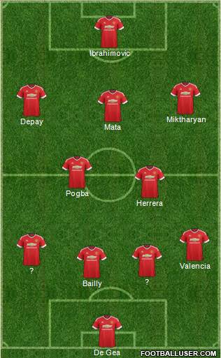 De Gea · Bailly · ? · ? · Valencia · Herrera · Pogba · Mata · Depay · Miktharyan · Ibrahimovic