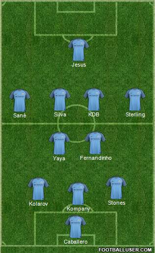 Caballero · Kompany · Kolarov · Stones · Yaya · Fernandinho · Sané · Silva · KDB · Sterling · Jesus