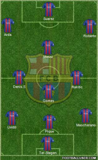 Ter-Stegen · Pique · Umtiti · Mascherano · Gomes · Rakitic · Denis.S · Messi · Roberto · Arda · Suarez