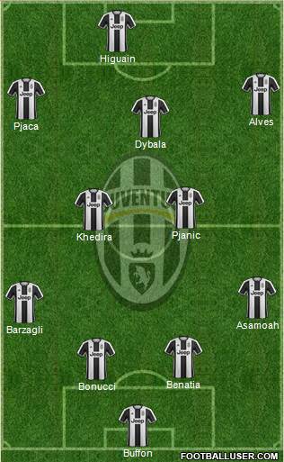 Buffon · Bonucci · Benatia · Barzagli · Asamoah · Khedira · Pjanic · Dybala · Pjaca · Alves · Higuain