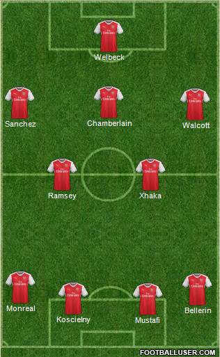 Mustafi · Koscielny · Bellerin · Monreal · Ramsey · Xhaka · Walcott · Sanchez · Chamberlain · Welbeck