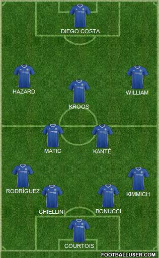 COURTOIS · CHIELLINI · BONUCCI · KIMMICH · RODRÍGUEZ · KANTÉ · MATIC · KROOS · WILLIAM · HAZARD · DIEGO COSTA