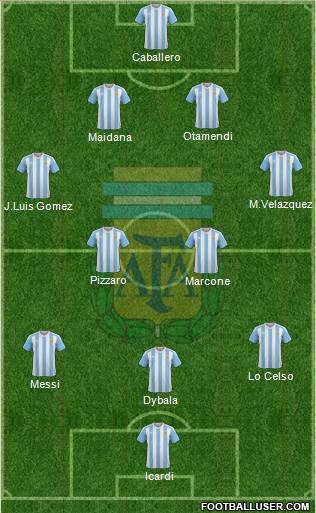 Icardi · Dybala · Messi · Lo Celso · Marcone · Pizzaro · J.Luis Gomez · M.Velazquez · Maidana · Otamendi · Caballero