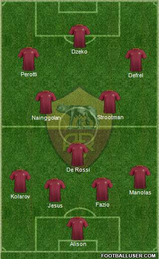 Alison · Jesus · Fazio · Kolarov · Manolas · De Rossi · Nainggolan · Strootman · Defrel · Perotti · Dzeko
