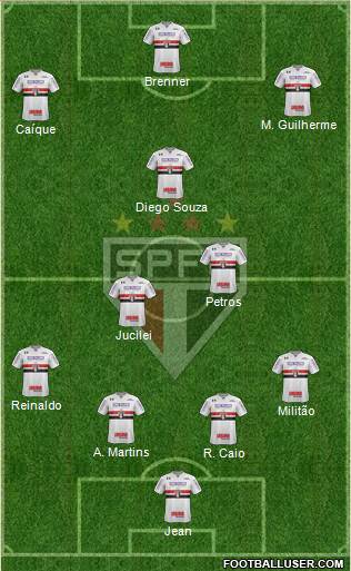 Jean · R. Caio · A. Martins · Militão · Reinaldo · Jucilei · Petros · Diego Souza · Caíque · M. Guilherme · Brenner