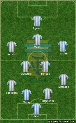 Romero · Garay · Otamendi · Tagliafico · Mercado · Ascacibar · Banega · Lo celso · Lanzini · Messi · Aguero