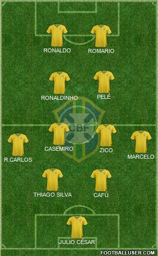 JULIO CÉSAR · CAFÚ · THIAGO SILVA · R.CARLOS · MARCELO · ZICO · CASEMIRO · RONALDINHO · PELÉ · ROMARIO · RONALDO