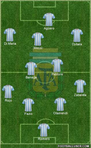 Romero · Fazio · Otamendi · Rojo · Zabaleta · Banega · Pastore · Messi · Dybala · Di Maria · Agüero