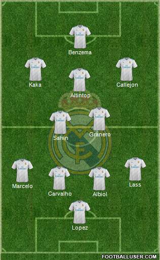 Lopez · Albiol · Carvalho · Marcelo · Lass · Sahin · Granero · Altintop · Kaka · Callejon · Benzema