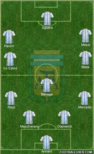 Armani · Mascherano · Otamendi · Rojo · Mercado · Banega · Lo Celso · Meza · Pavón · Messi · Aguero