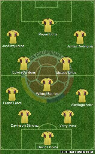 David Ospina · Yerry Mina · Davinson Sánchez · Santiago Arias · Frank Fabra · Wilmar Barrios · Mateus Uribe · Edwin Cardona · James Rodríguez · José Izquierdo · Miguel Borja