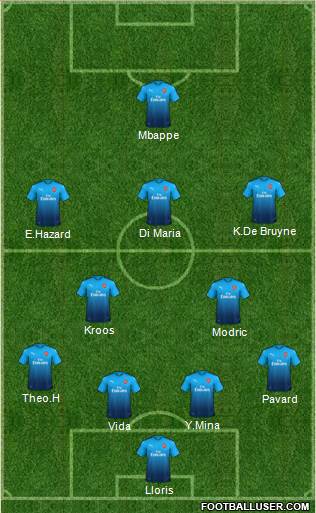 Lloris · Vida · Y.Mina · Pavard · Theo.H · Modric · Kroos · E.Hazard · Di Maria · K.De Bruyne · Mbappe