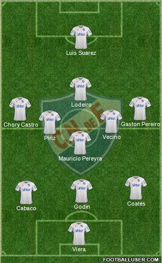 Viera · Cabaco · Godin · Coates · Mauricio Pereyra · Piriz · Vecino · Chory Castro · Gaston Pereiro · Lodeiro · Luis Suarez
