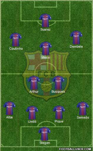 Stegen · Umtiti · Pique · Semedo · Alba · Arthur · Busquets · Messi · Coutinho · Dembele · Suarez