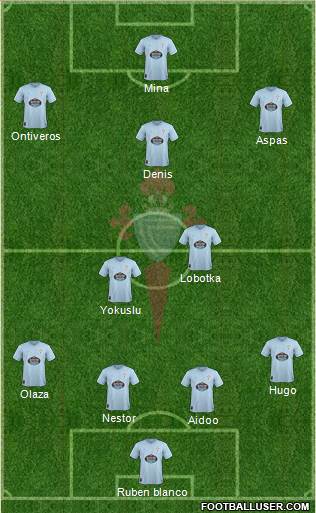 Ruben blanco · Aidoo · Nestor · Olaza · Hugo · Yokuslu · Lobotka · Denis · Aspas · Ontiveros · Mina