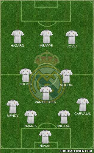 NAVAS · RAMOS · MILITAO · MENDY · CARVAJAL · VAN DE BEEK · MODRIC · KROOS · JOVIC · HAZARD · MBAPPE