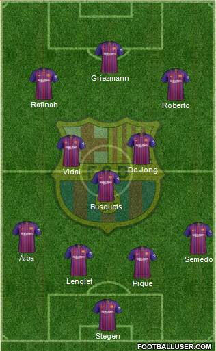 Stegen · Pique · Lenglet · Semedo · Alba · Busquets · Vidal · De Jong · Roberto · Rafinah · Griezmann