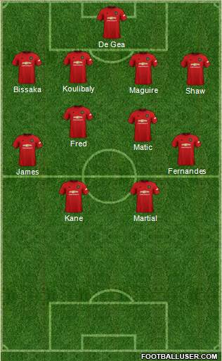De Gea · Koulibaly · Bissaka · Maguire · Shaw · Fred · Matic · Fernandes · James · Kane · Martial