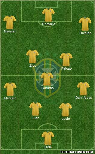Dida · Lucio · Juan · Marcelo · Dani Alves · Toninho · Falcao · Zico · Rivaldo · Neymar · Romario