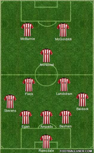 Ramsdale · Egan · Ampadu · Basham · Stevens · Baldock · Fleck · Lundstram · Norwood · McGoldrick · McBurnie