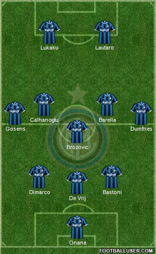 Onana · De Vrij · Dimarco · Bastoni · Brozovic · Gosens · Dumfries · Calhanoglu · Barella · Lukaku · Lautaro