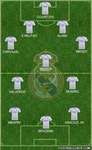 BENZEMA · MBAPPE · VINICIUS JR · VALVERDE · MODRIC · ENZO F · CARVAJAL · MENDY · E MILITAO · ALABA · COURTOIS