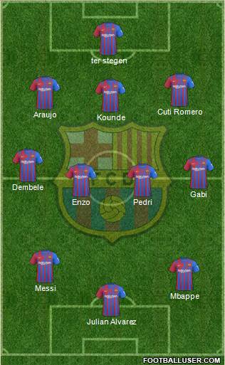 Julian Alvarez · Mbappe · Messi · Enzo · Pedri · Gabi · Dembele · Kounde · Araujo · Cuti Romero · ter stegen