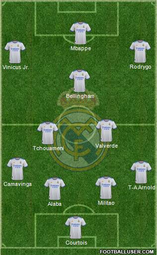 Courtois · Alaba · Militao · T-A Arnold · Camavinga · Tchouameni · Valverde · Bellingham · Vinicus Jr. · Rodrygo · Mbappe