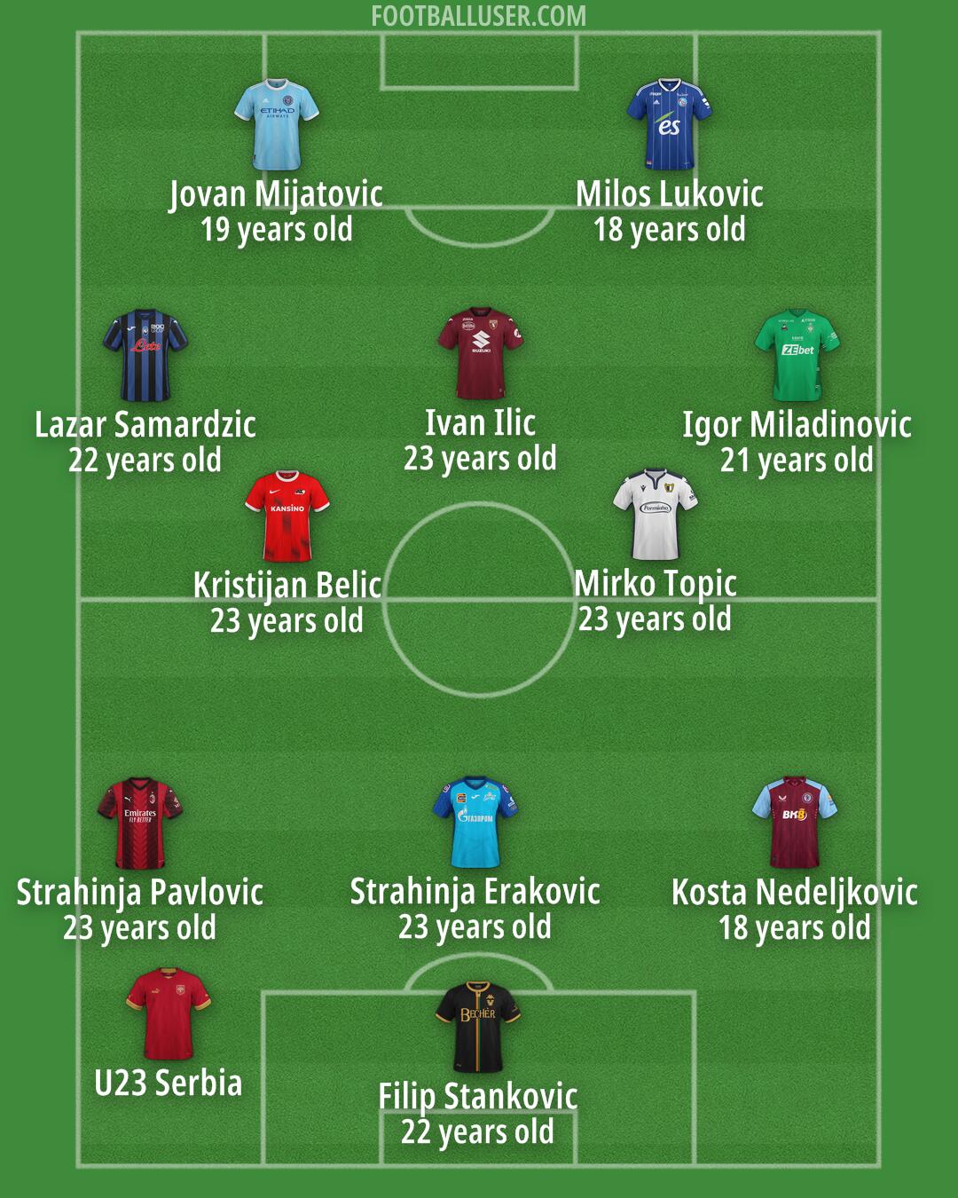 Filip Stankovic (22 years old) (Venezia) · Strahinja Pavlovic (23 years old) (Milan) · Strahinja Erakovic (23 years old) (Zenit) · Kosta Nedeljkovic (18 years old) (Aston Villa) · Kristijan Belic (23 years old) (AZ) · Mirko Topic (23 years old) (Famalicão) · Ivan Ilic (23 years old) (Torino) · Lazar Samardzic (22 years old) (Atalanta) · Igor Miladinovic (21 years old) (Saint-Étienne) · Jovan Mijatovic (19 years old) (New York City) · Milos Lukovic (18 years old) (Strasbourg) · U23 Serbia (Serbia)