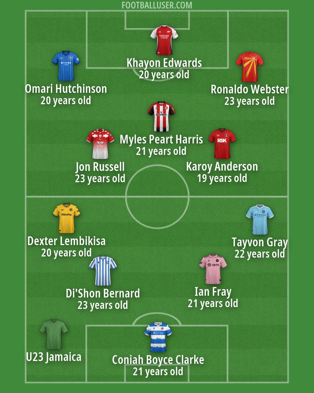 Coniah Boyce Clarke (21 years old) (Reading) · Dexter Lembikisa (20 years old) (Wolves) · Di'Shon Bernard (23 years old) (Sheffield Wednesday) · Ian Fray (21 years old) (Inter Miami) · Tayvon Gray (22 years old) (New York City) · Jon Russell (23 years old) (Barnsley) · Karoy Anderson (19 years old) (Charlton) · Myles Peart Harris (21 years old) (Brentford) · Ronaldo Webster (23 years old) (North Macedonia) · Omari Hutchinson (20 years old) (Ipswich) · Khayon Edwards (20 years old) (Arsenal) · U23 Jamaica