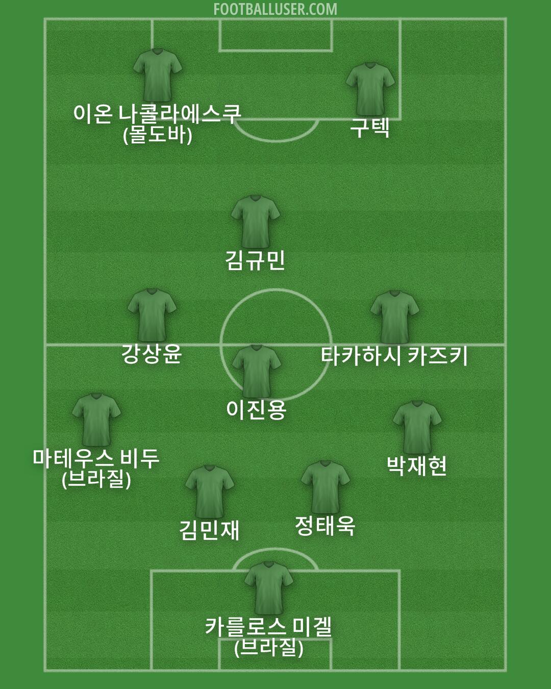 카를로스 미겔 (브라질) · 마테우스 비두 (브라질) · 김민재 · 정태욱 · 박재현 · 이진용 · 강상윤 · 타카하시 카즈키 · 김규민 · 이온 나콜라에스쿠 (몰도바) · 구텍