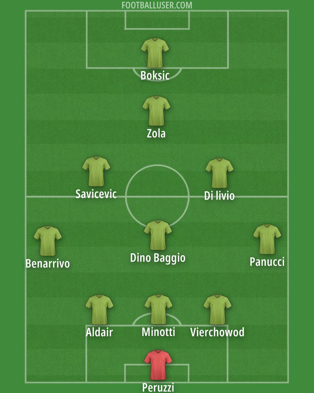 Peruzzi · Minotti · Aldair · Vierchowod · Benarrivo · Panucci · Dino Baggio · Savicevic · Di livio · Zola · Boksic