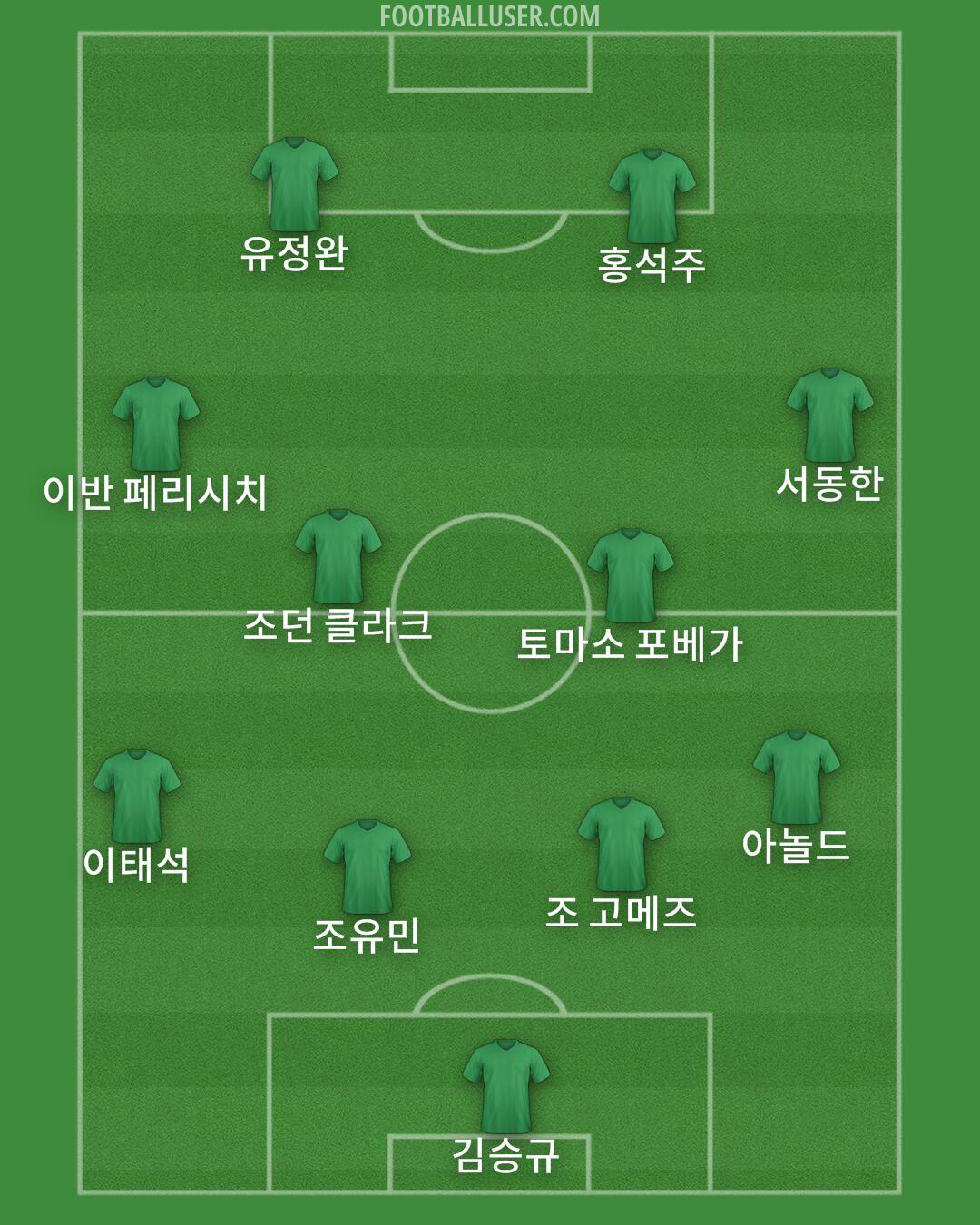 김승규 · 이태석 · 조유민 · 조 고메즈 · 아놀드 · 이반 페리시치 · 조던 클라크 · 토마소 포베가 · 서동한 · 유정완 · 홍석주