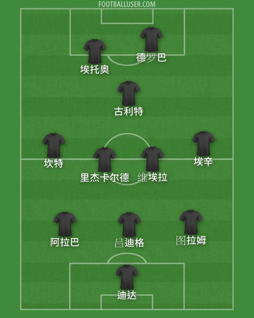 德罗巴 · 坎特 · 埃托奥 · 图拉姆 · 埃辛 · 吕迪格 · 阿拉巴 · 迪达 · 里杰卡尔德 · 维埃拉 · 古利特