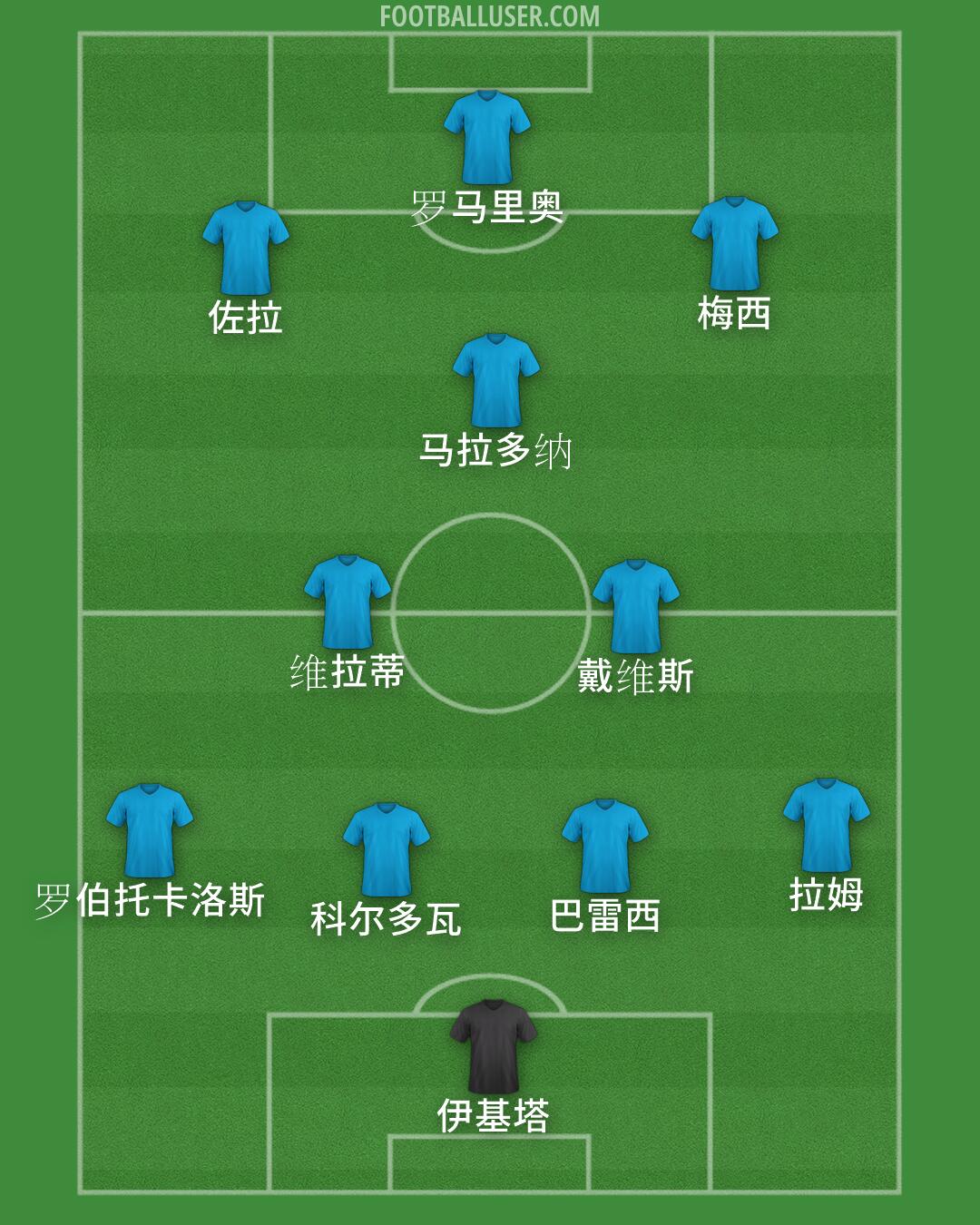 梅西 · 伊基塔 · 罗马里奥 · 马拉多纳 · 佐拉 · 戴维斯 · 维拉蒂 · 科尔多瓦 · 巴雷西 · 拉姆 · 罗伯托卡洛斯