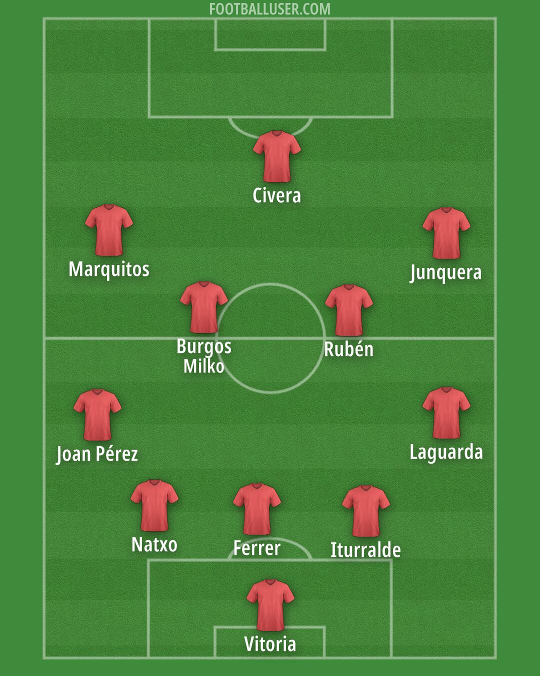 Vitoria · Laguarda · Iturralde · Ferrer · Natxo · Joan Pérez · Rubén · Burgos (Milko) · Junquera · Marquitos · Civera