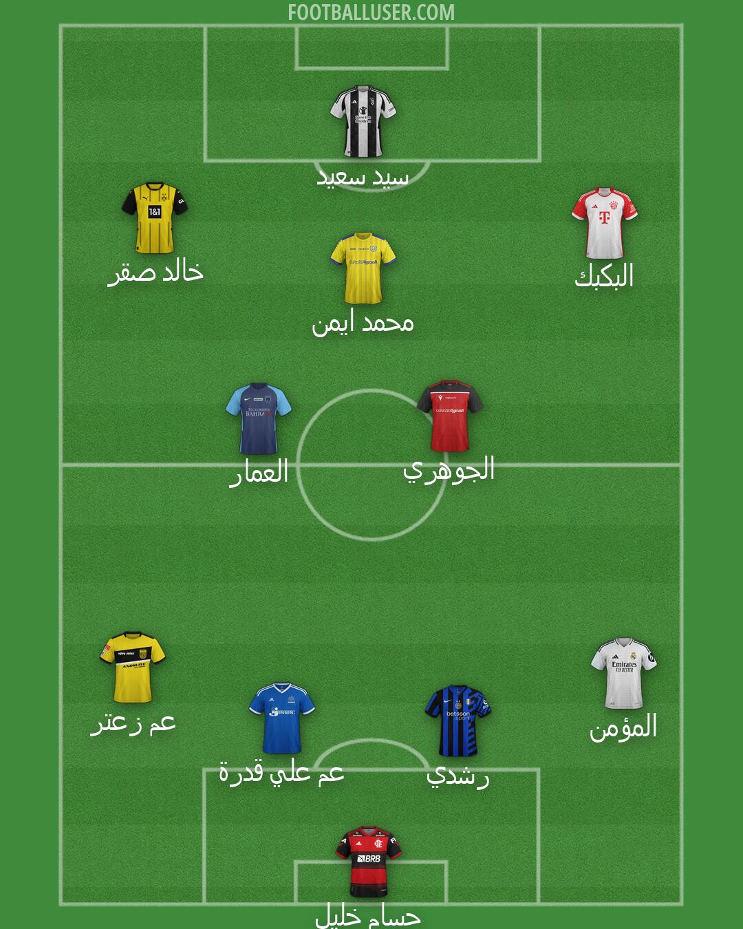 سيد سعيد (Juventus) · البكبك (FC Bayern) · العمار (Paris FC) · المؤمن (Real Madrid) · خالد صقر (Borussia Dortmund) · الجوهري (Al-Gaish) · حسام خليل (Flamengo) · محمد ايمن (Ismaily) · رشدي (Inter) · عم علي قدرة (Lyngby) · عم زعتر (Hyderabad)