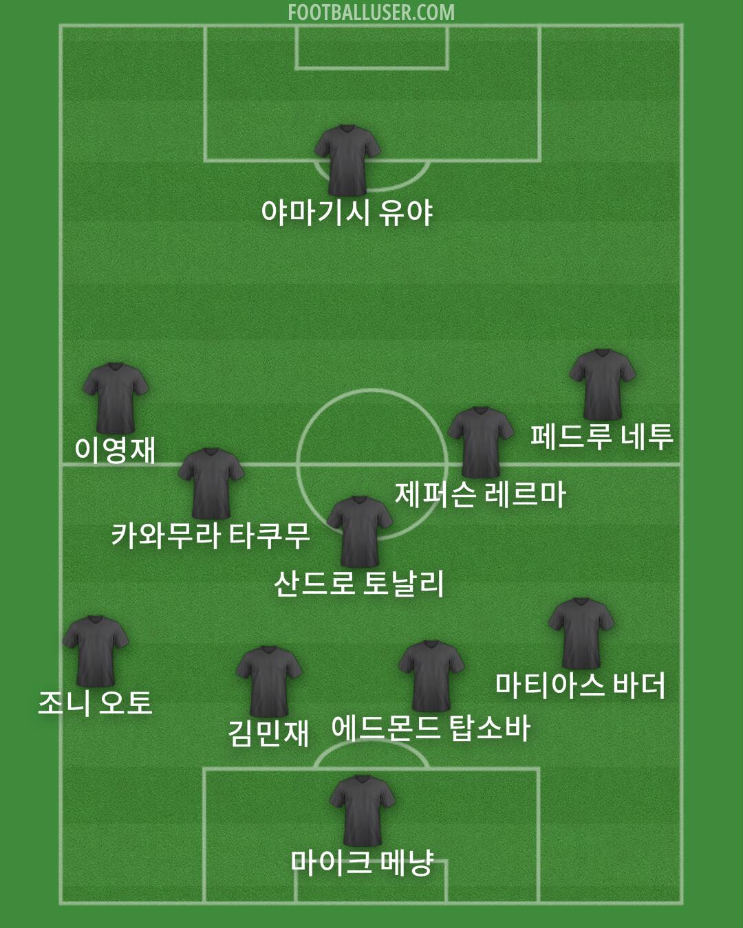 야마기시 유야 · 이영재 · 카와무라 타쿠무 · 산드로 토날리 · 제퍼슨 레르마 · 페드루 네투 · 조니 오토 · 김민재 · 에드몬드 탑소바 · 마티아스 바더 · 마이크 메냥