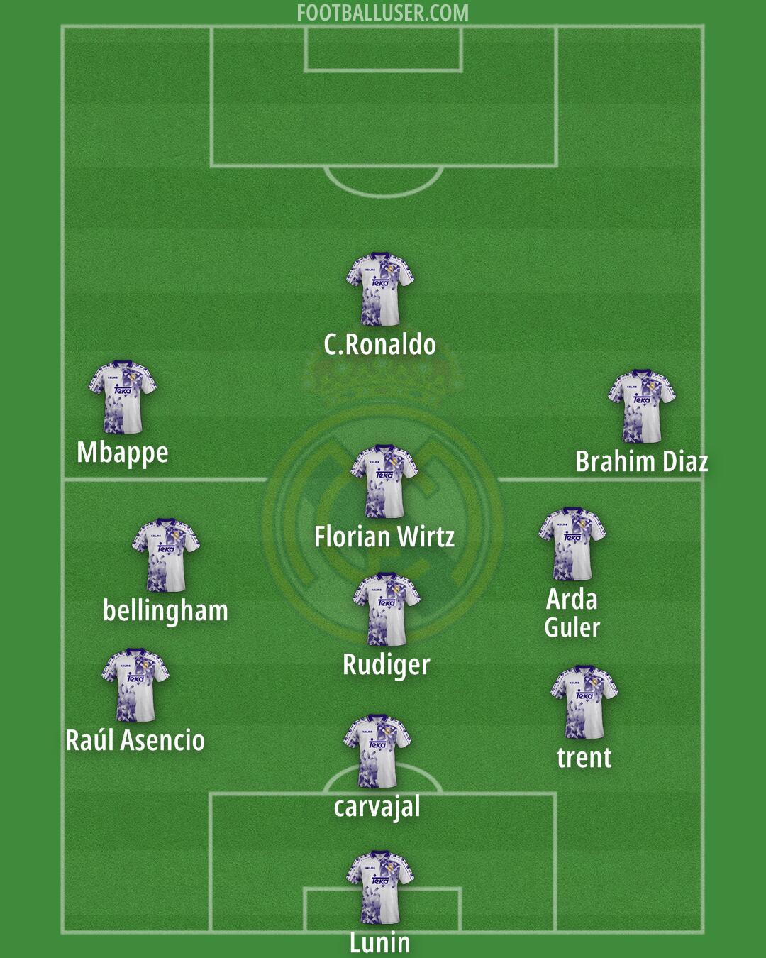 C.Ronaldo · Florian Wirtz · bellingham · Arda (Guler) · Mbappe · Brahim Diaz · Rudiger · carvajal · trent · Raúl Asencio · Lunin