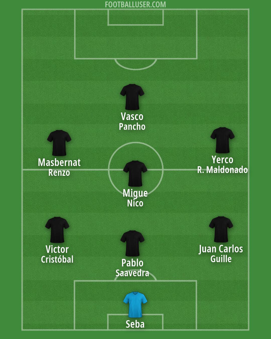 Pablo (Saavedra) · Seba · Vasco (Pancho) · Migue (Nico) · Yerco (R. Maldonado) · Masbernat (Renzo) · Victor (Cristóbal) · Juan Carlos (Guille)