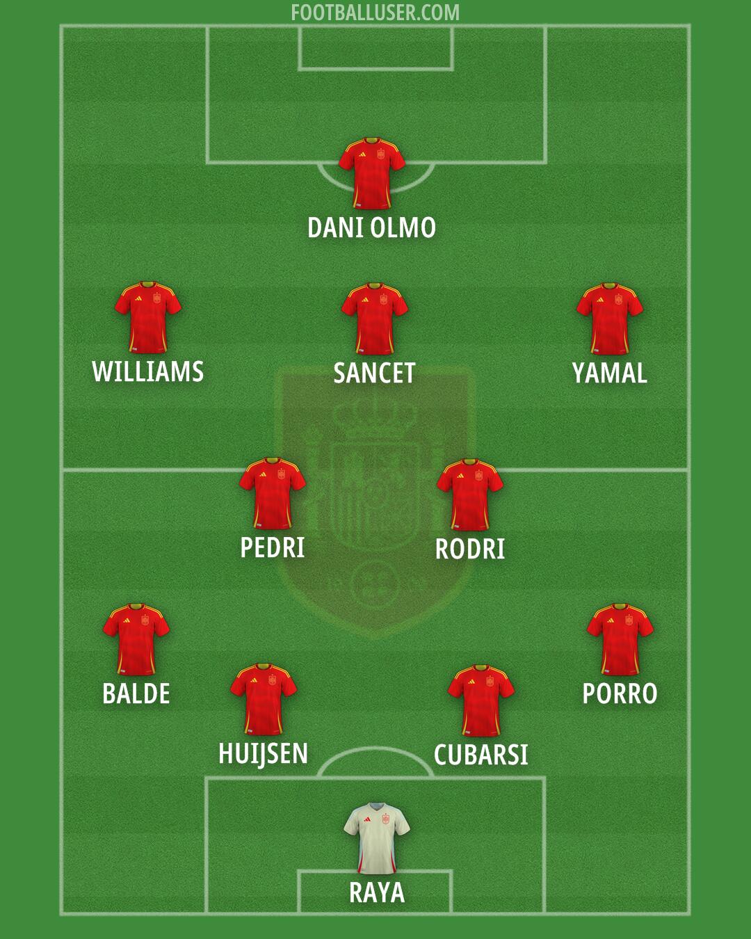 YAMAL · PEDRI · WILLIAMS · RODRI · CUBARSI · HUIJSEN · BALDE · DANI OLMO · SANCET · PORRO · RAYA