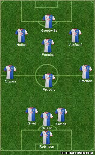 Robinson · Nelsen · Samba · Givet · Petrovic · Olsson · Emerton · Formica · Hoilett · Vukčević · Goodwillie