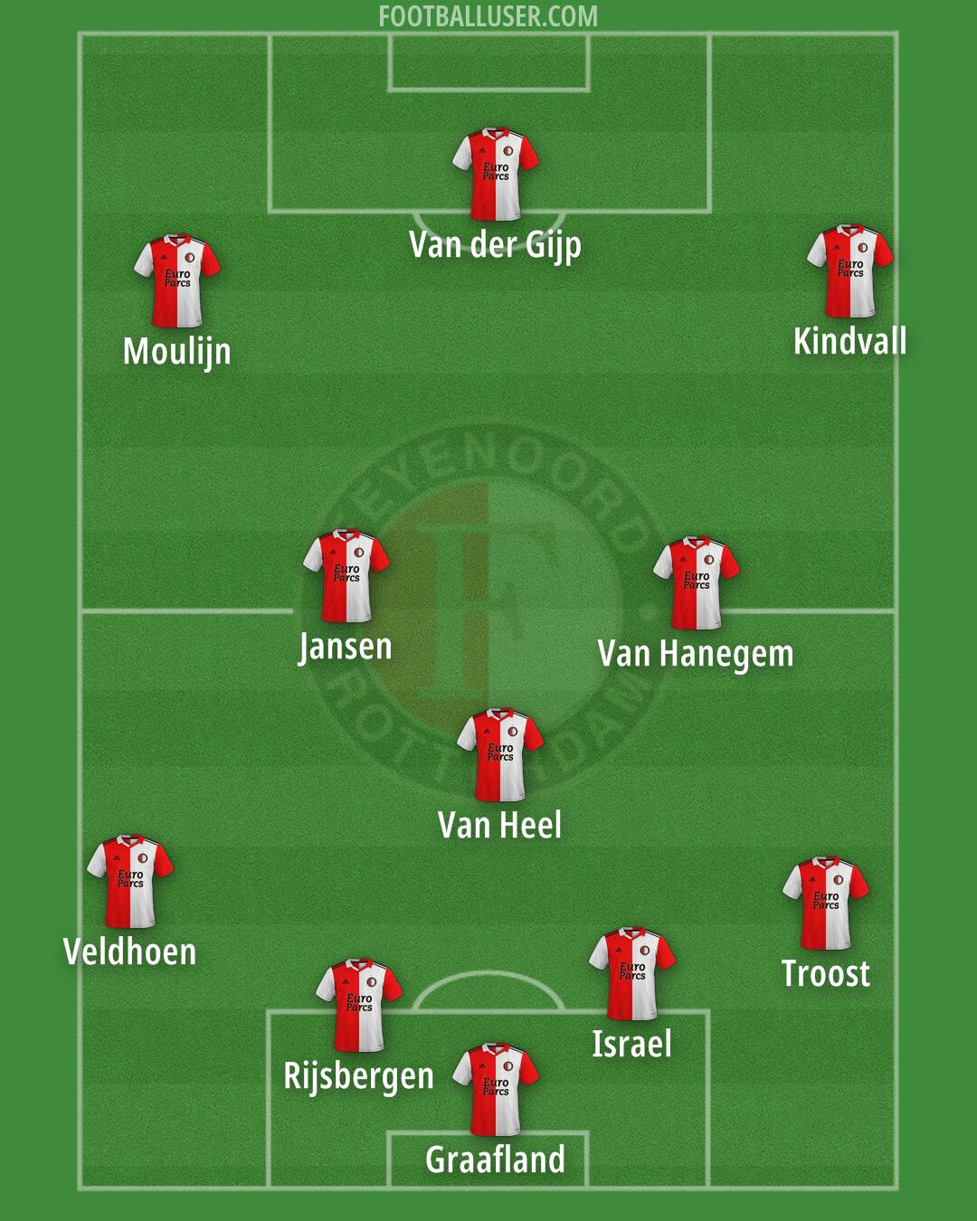 Graafland · Troost · Israel · Rijsbergen · Veldhoen · Van Heel · Van Hanegem · Jansen · Kindvall · Van der Gijp · Moulijn