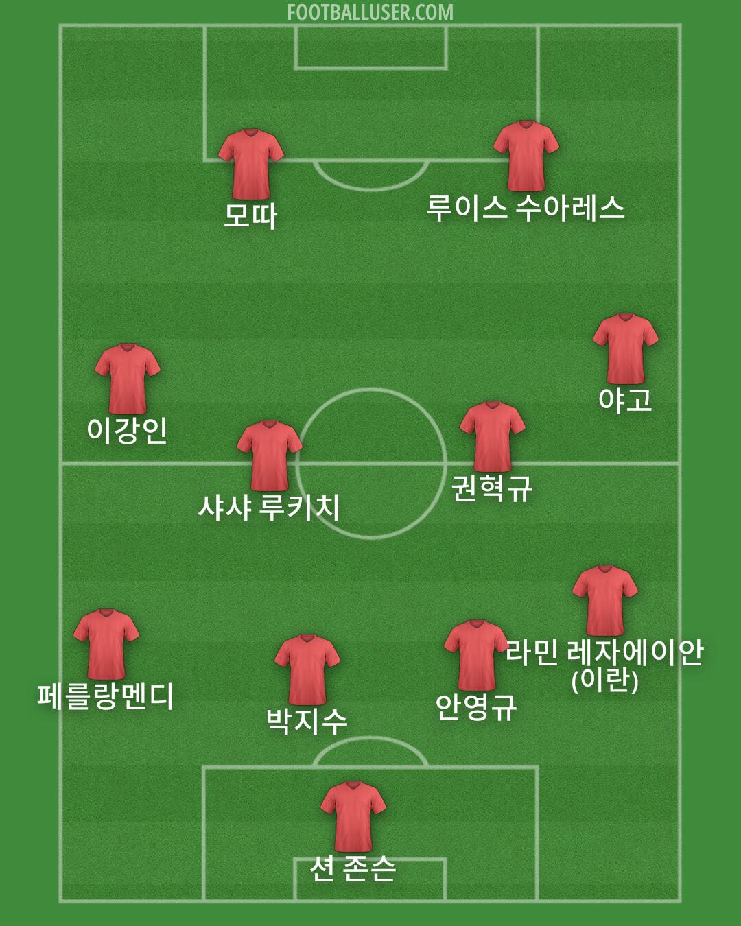 모따 · 루이스 수아레스 · 이강인 · 샤샤 루키치 · 권혁규 · 야고 · 페를랑멘디 · 박지수 · 안영규 · 라민 레자에이안 (이란) · 션 존슨
