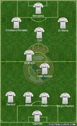 Casilias · Sergio Ramos · Pepe · Albiol · Santon · Xabi Alonso · Granero · Ozil · Di Maria · Cristiano Ronaldo · Benzema