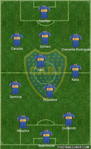 Ibrahimovic · Mouche · Cvitanich · Riquelme · Somosa · Kaka · Xavi · Clemente Rodriguez · Caruzzo · Schiavi · Casillas