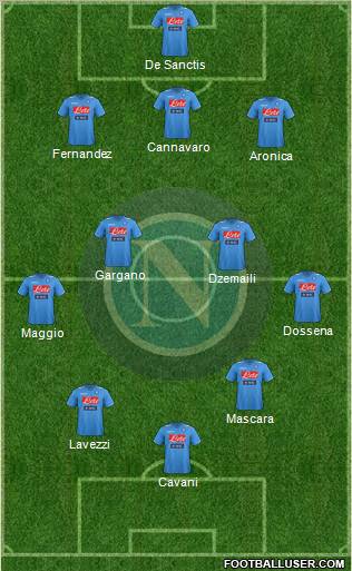 Cavani · Lavezzi · Mascara · Maggio · Dossena · Dzemaili · Gargano · Aronica · Fernandez · Cannavaro · De Sanctis