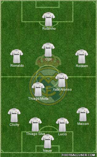 Neuer · Lucio · Thiago Silva · Clichy · Maicon · Thiago Motta · Xabi Alonso · Robben · Ronaldo · Ozil · Robinho