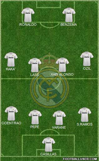 CASILLAS · VARANE · PEPE · S.RAMOS · COENTRAO · LASS · XABI ALONSO · KAKA' · OZIL · RONALDO · BENZEMA