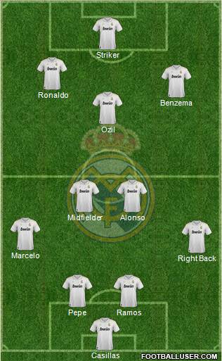 Casillas · Pepe · Ramos · Right Back · Marcelo · Midfielder · Alonso · Ozil · Benzema · Ronaldo · Striker